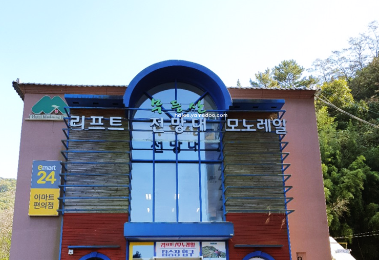 매표는 1층 편의점에서 이루어졌으며, 리프트와 모노레일을 함께 이용할 수 있는 패키지 티켓을 구매했습니다. 리프트를 타고 약 15분 정도 올라가니 모노레일 승강장에 도착했습니다.