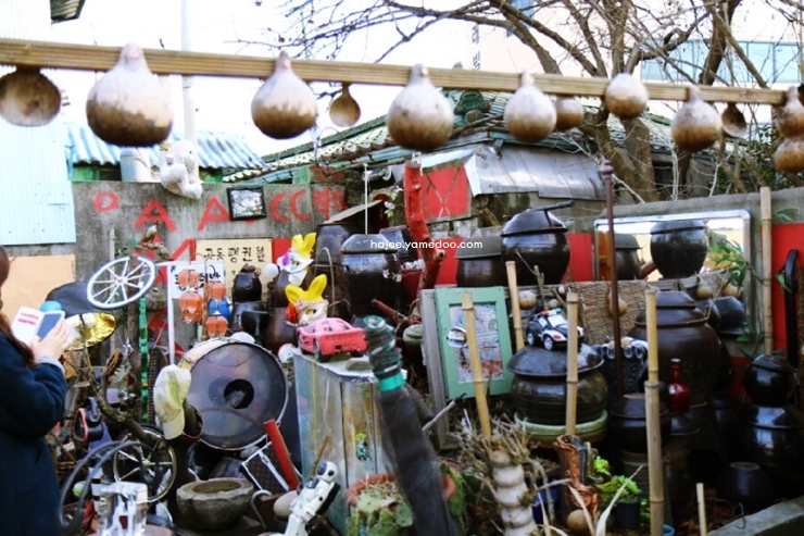 입구에 들어서면 아기자기한 벽화와 조형물들이 방문객을 맞이합니다. 골목길을 따라 걷다 보면 버려진 물건들로 만든 정크 아트 작품들이 눈길을 끕니다.