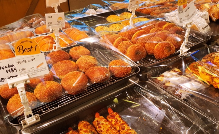 다양한 종류의 빵과 과자들이 진열되어 있어 선택의 폭이 넓습니다.그중에서도 '공룡알 빵'과 '나비파이'는 이곳의 대표 메뉴로 손꼽힙니다. 공룡알 빵은 바삭한 바게트 속에 고소한 계란 샐러드가 가득 채워져 있습니다.