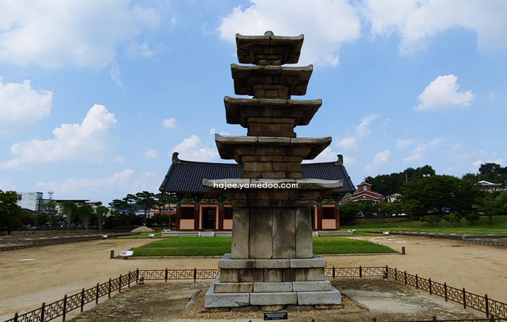 정림사지 5층석탑은 부여의 고요한 풍경 속에서 우아하게 자리 잡고 있었습니다. 석탑 주변으로 펼쳐진 잔디밭과 나무들이 탑의 고즈넉한 아름다움을 더욱 돋보이게 해주었습니다. 가까이 다가가면 석탑의 정교한 조각과 균형 잡힌 구조가 감탄을 자아내며 백제의 건축 기술을 실감하게 했습니다.