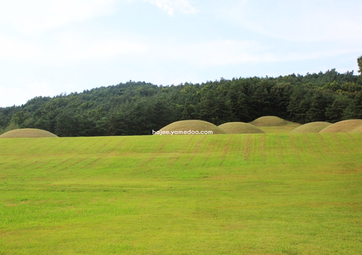 특히 고분들 사이로 보이는 드넓은 초원과 하늘이 어우러진 풍경이 마음을 차분하게 만들어주더군요. 조용한 분위기 속에서 걸으며 주변의 소리와 풍경에 집중하니 마치 시간 여행을 하는 듯한 기분이 들었습니다. 고분군 옆에는 작은 휴식 공간도 마련되어 있어 여유롭게 앉아 쉬며 자연을 만끽할 수 있었습니다.