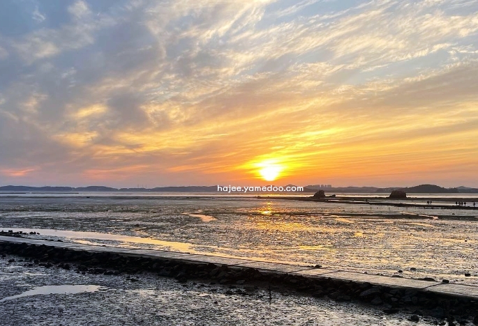 썰물 때 모습을 드러내는 바닷길은 독특한 매력을 더해주었는데, 이 길을 따라 석양을 감상하는 경험이 정말 인상적이었습니다. 물이 빠진 후 드러난 갯벌에서는 게와 조개 같은 생물들을 볼 수 있어 자연의 생동감을 느낄 수 있었어요.