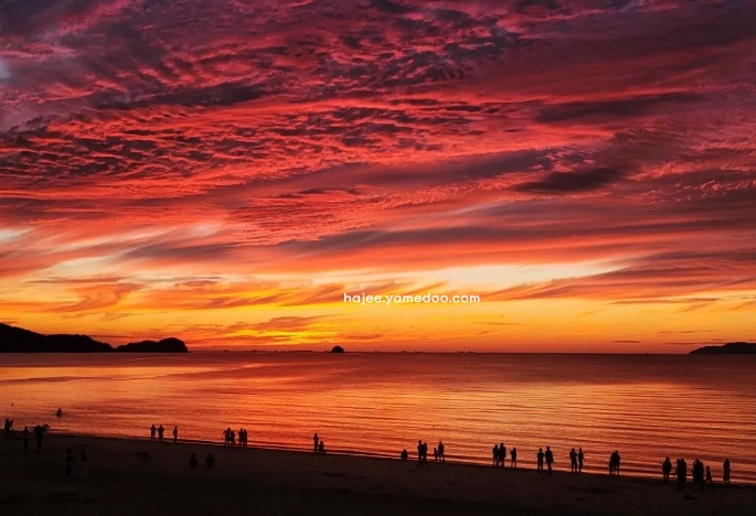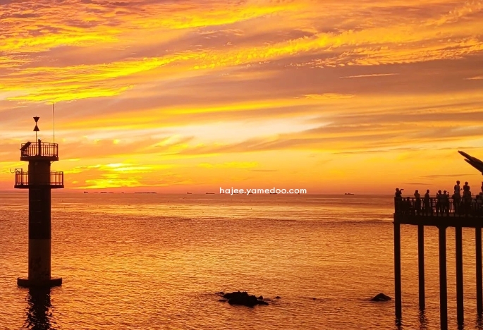 일몰 시간이 가까워지자 점점 붉어지는 하늘과 그 아래로 반짝이는 바다의 조화가 정말 인상적이었어요. 주변에는 가족 단위나 연인들이 함께 와서 사진을 찍거나 여유를 즐기는 모습이 많이 보였습니다.