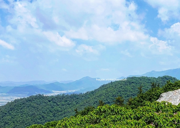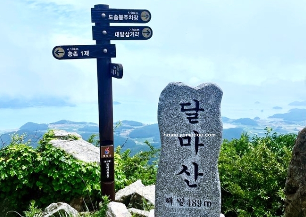 길을 따라 올라가는 동안 드넓게 펼쳐진 숲과 멀리 보이는 바다 풍경이 가슴을 시원하게 열어주었습니다. 곳곳에 설치된 안내판은 달마산의 지형과 역사적 의미를 알려주어 산행에 흥미를 더했습니다.