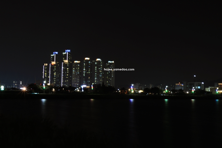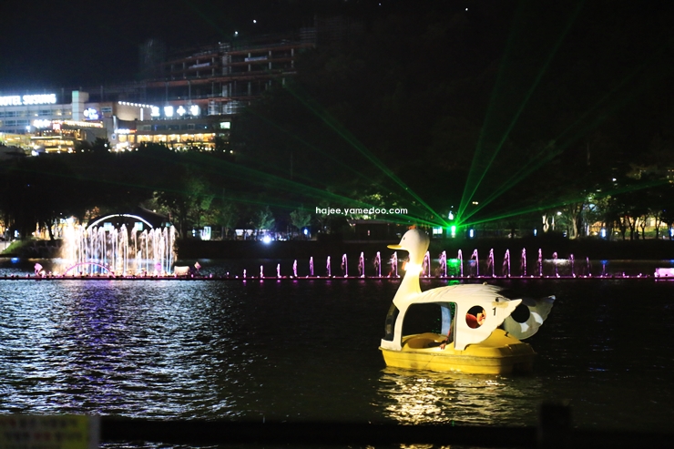저녁 시간에도 많은 사람들이 이곳을 찾았지만, 넓고 잘 정비된 공간 덕분에 여유롭게 걸을 수 있었습니다. 물 위에 비친 조명과 주변의 나무들이 어우러져 마치 한 폭의 그림 같은 풍경을 만들어냈습니다.
