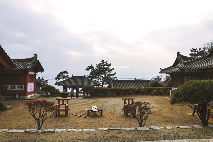 바닷가와 가까운 위치 덕분에 촬영장 너머로 보이는 푸른 바다 풍경이 더욱 운치를 더해주었습니다. 마을 중앙에 위치한 연못과 작은 정자는 사진 찍기 좋은 장소로, 많은 방문객들이 추억을 남기기에 바빴습니다.