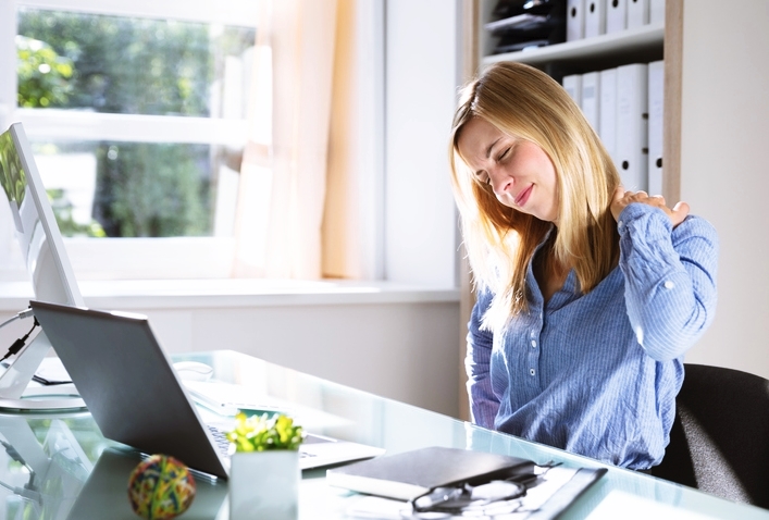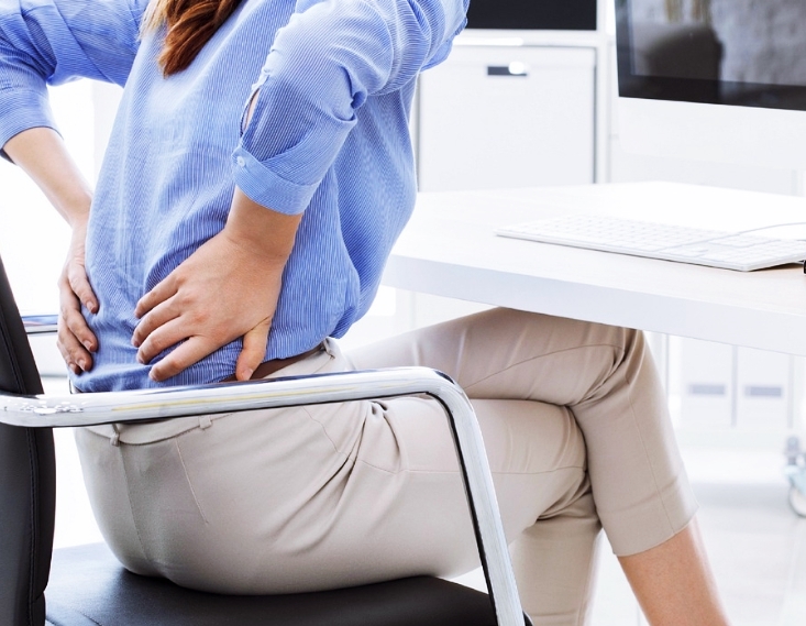 증상 : 허리와 엉덩이 부위의 지속적인 통증과 뻣뻣함, 장시간 앉아 있을 때 통증 심화