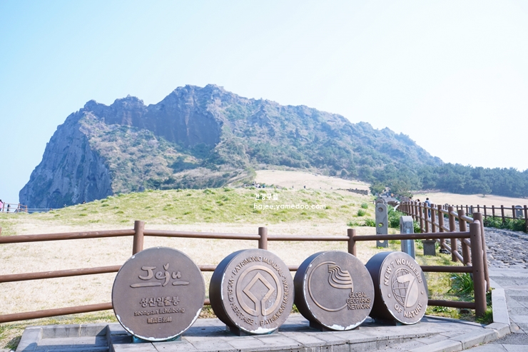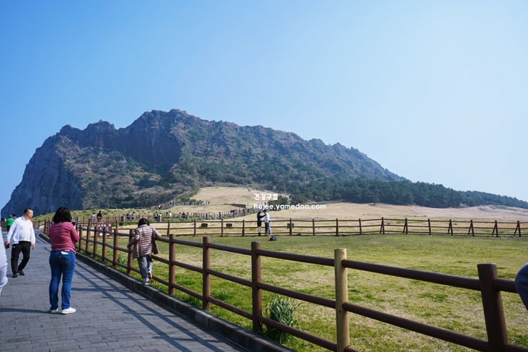 본격적으로 성산일출봉에 오르기 전, 표지석 앞에서 잠시 기념사진을 찍었다. 사진 속에서 밝게 웃는 사람들의 표정을 보며 나 역시 이곳에 온 것이 참 다행이라는 생각이 들었다.