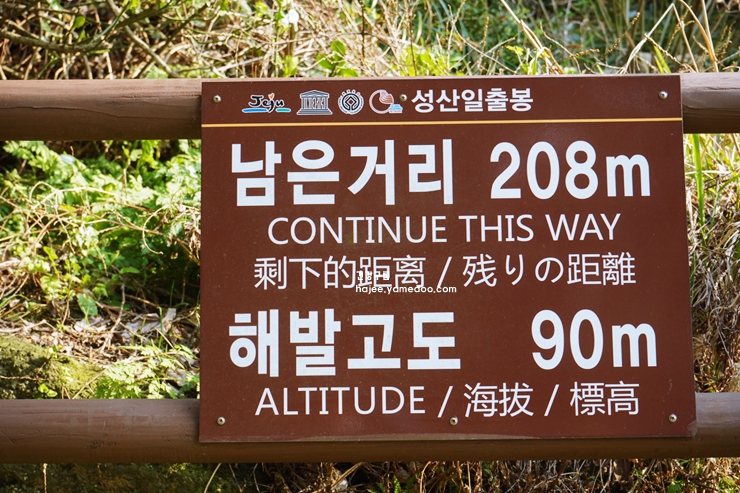 계단을 따라 조금씩 오르다 보니 중간에 '남은 거리 208m'라는 표지판이 보였다. 벌써 이렇게 올라왔나 싶었지만, 여전히 남은 거리는 꽤 있었다.