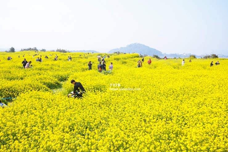 나 역시 꽃밭 한가운데에서 셀카를 찍으며 이 순간을 기록했다. 드넓게 펼쳐진 유채꽃밭을 걷다 보면, 어느새 성산일출봉이 저 멀리서 모습을 드러낸다. 유채꽃밭과 성산일출봉이 어우러진 풍경은 그야말로 제주에서만 경험할 수 있는 특별한 순간이었다.