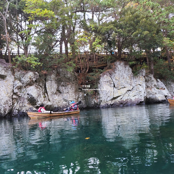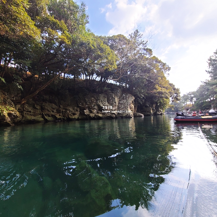 특히, 바위 사이사이로 흐르는 물은 유독 푸른빛을 띠어 신비로운 느낌을 주었습니다. 이곳의 물빛은 계절과 날씨에 따라 조금씩 다르다고 들었는데, 이날은 유난히 청록빛을 띠고 있어 더욱 아름답게 느껴졌습니다.