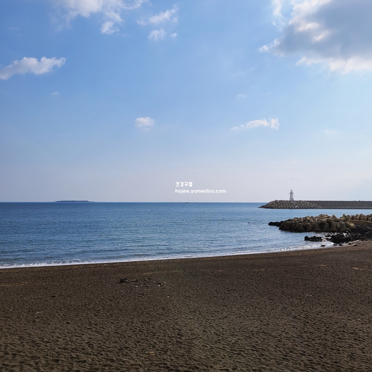 부드러운 파도 소리와 함께 탁 트인 하늘이 펼쳐진 바다는 그 자체로 마음을 평온하게 해줍니다. 모래사장을 따라 걸으며 바라본 수평선은 끝이 없을 것만 같았고, 한쪽에는 방파제가 자리하고 있어 바다와 육지를 아늑하게 감싸고 있었습니다.