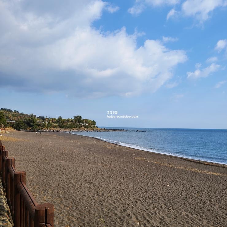 쇠소깍을 떠나기 전, 다시 한번 바다를 바라보았습니다. 부드러운 파도 소리와 해안선을 따라 이어지는 검은 모래사장은 여행의 끝을 아쉬워하게 만들었습니다.