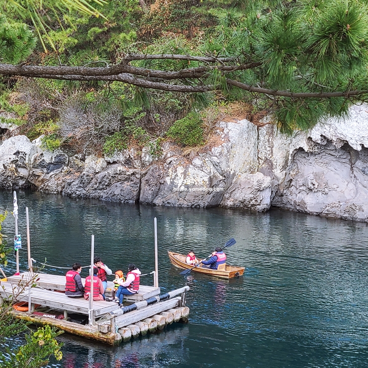 중간중간 바위에 앉아 낚시를 즐기는 사람들도 보였고, 한쪽에서는 작은 나룻배를 타고 여유를 즐기는 가족들의 모습도 볼 수 있었습니다. 이러한 풍경들은 쇠소깍이 많은 사람들에게 사랑받는 이유를 잘 보여주고 있었습니다.