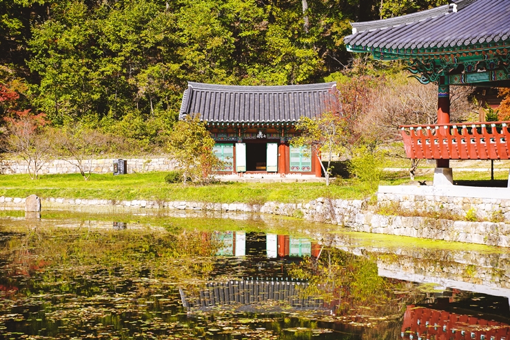 불영사 내부는 단정하고 고요하여 자연과 어우러진 모습이 참 인상적이었습니다. 연못에 비친 단풍과 사찰의 모습은 마치 거울처럼 투명하고 아름다웠습니다.