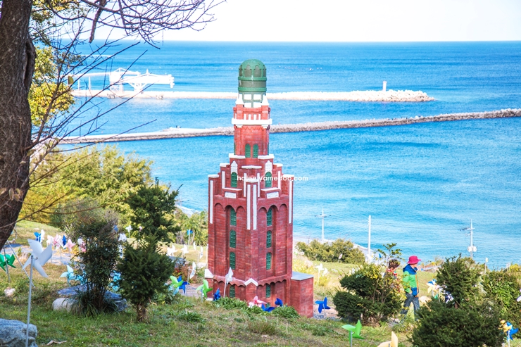 스카이워크를 지나면 출렁다리를 건너 등기산공원으로 이어집니다. 공원 내에는 후포 등대를 비롯한 세계 각국의 유명한 등대 모형이 전시되어 있어 흥미로웠던 울진 가볼만한곳 베스트10입니다.